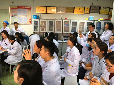 2018年3月7日,检验科李丰益副主任、刘小娟副主任带领检验团队到产科进行沟通。检验科免疫组组长石华老师和血液组组长张鸽老师对磷脂相关抗体检测和D二聚体检测进行临床问题沟通交流,产科30余名医护人员参加了本次沟通会。