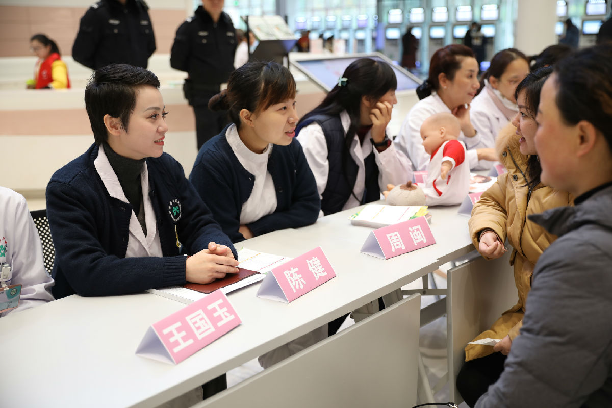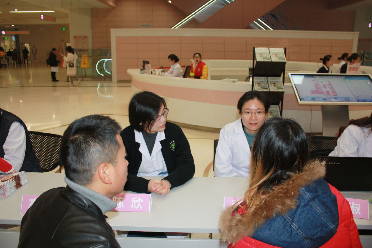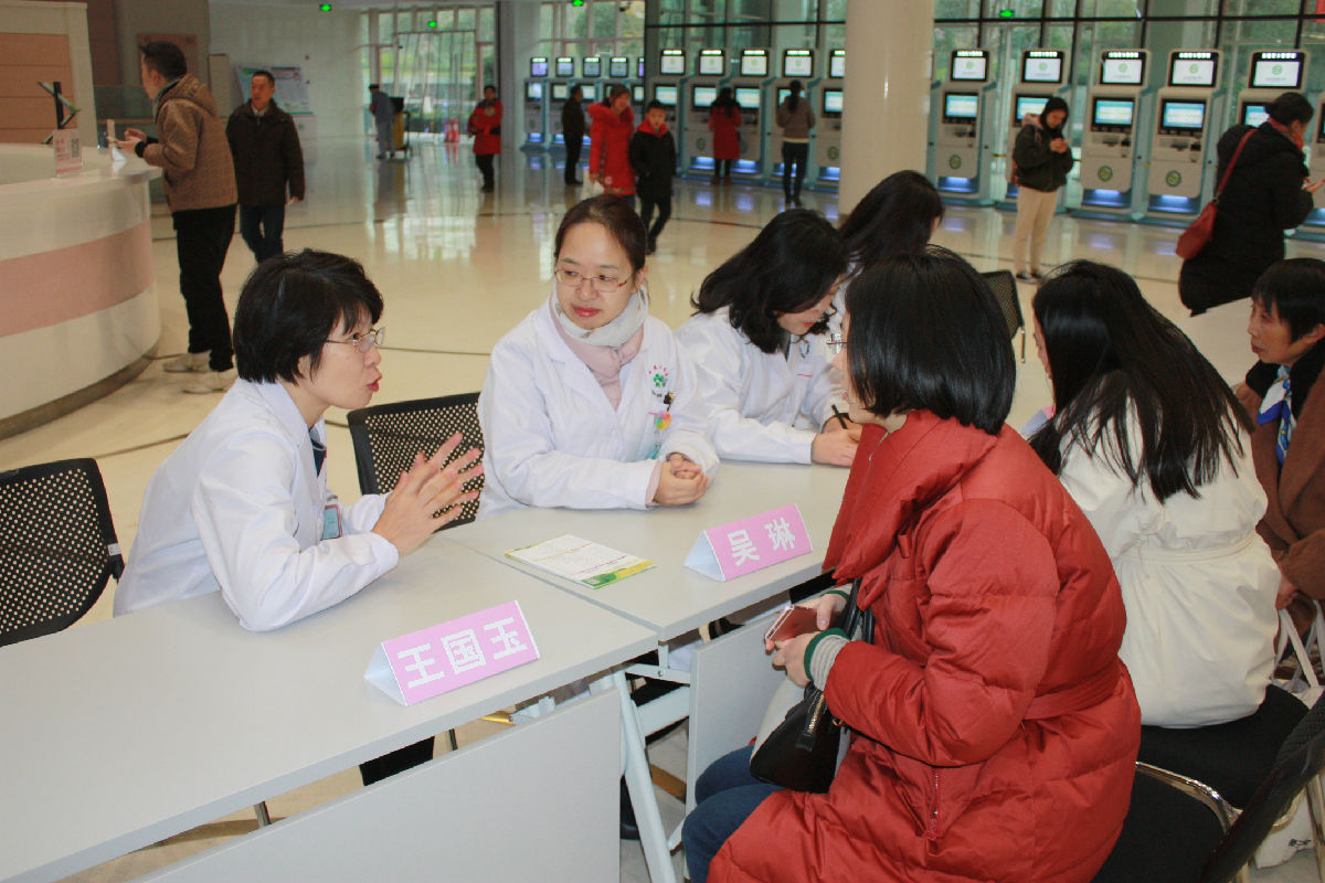 为推动“高龄孕产妇健康行动” 进一步发展,2018年12月14日,产科在锦江院区门诊大厅举办“高龄孕产妇健康行动”义诊活动。刘瀚旻院长、产科刘兴会主任、胡雅毅副主任,彭冰教授、周淑副教授、吴琳副教授、主治医生李涛,病员中心姚建蓉老师,产科护士长辜莉、王国玉,产科门诊周闽,产科陈健参加此次义诊,义诊还特别邀请了麻醉科林雪梅主任、产前诊断中心张竹医生、超声科陈欣医生等参加,十余位坐诊共同为患者提供义诊咨询服务。