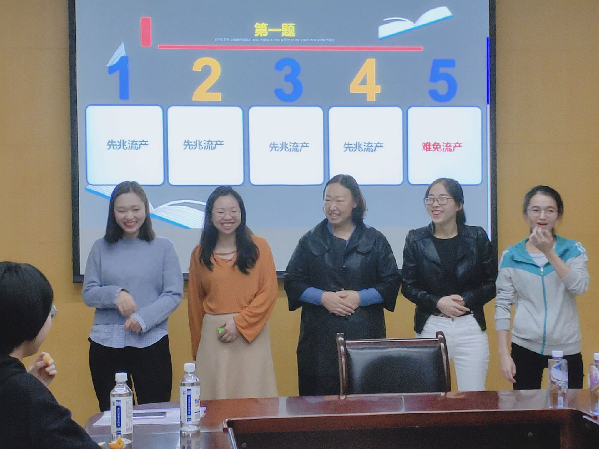首先,在护士长何菁菁老师的带动下,在场的所有进修生和规培生进行了自我介绍,并对前期的工作和学习的感受进行了分享,现场的参会人员对产房的心得体会进行交流讨论,褒奖了前期工作中做得较好的方面,同时也指出了有待改善的地方。接着,在主持人的引导下,开展了“同心•同乐•游戏汇”活动,在游戏中,大家褪去了工作中的疲倦,尽相参与到游戏中,没有了陌生的距离感,每个人都露出了开怀的笑容,护士长何菁菁老师和龙丽佳老师也成为了游戏中的一角,大家都尽情的享受游戏的欢乐,体现出特别强的团队凝聚力,同时也增进了大家的感情,让大家在轻松愉快的氛围中感受到产房大家庭的温暖,现场呈现出一片其乐融融的景象。在欢乐之中,大家也听到了规培学员为大家精心准备的小讲课,涉及到产后出血、脐带延长断脐、胎膜早破等方面的课程,弥补了大家在这些知识点方面的空缺点,为大家灌输了新知识,也加强了大家对专业知识点的记忆,同时,护士长王国玉老师也对小讲课做了深刻的点评,指出大家在讲课的时候拥有良好的台风,但是还有一些不足之处需要继续加强改进。