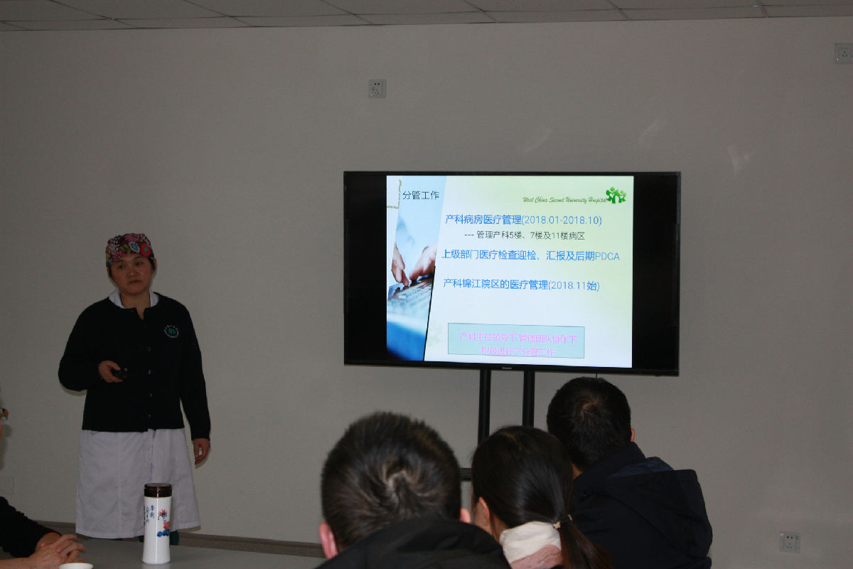 按照《四川大学华西第二医院科室(部门)领导集体和领导人员考核评价实施办法(试行)》各位干部从德、能、勤、绩、廉等方面进行述职。产科9位在锦江院区的试用期满的干部进行了述职,对自己领导科室完成的相关工作进行了展示,团委陈莉娟老师组织与会人员对述职的干部进行测评。