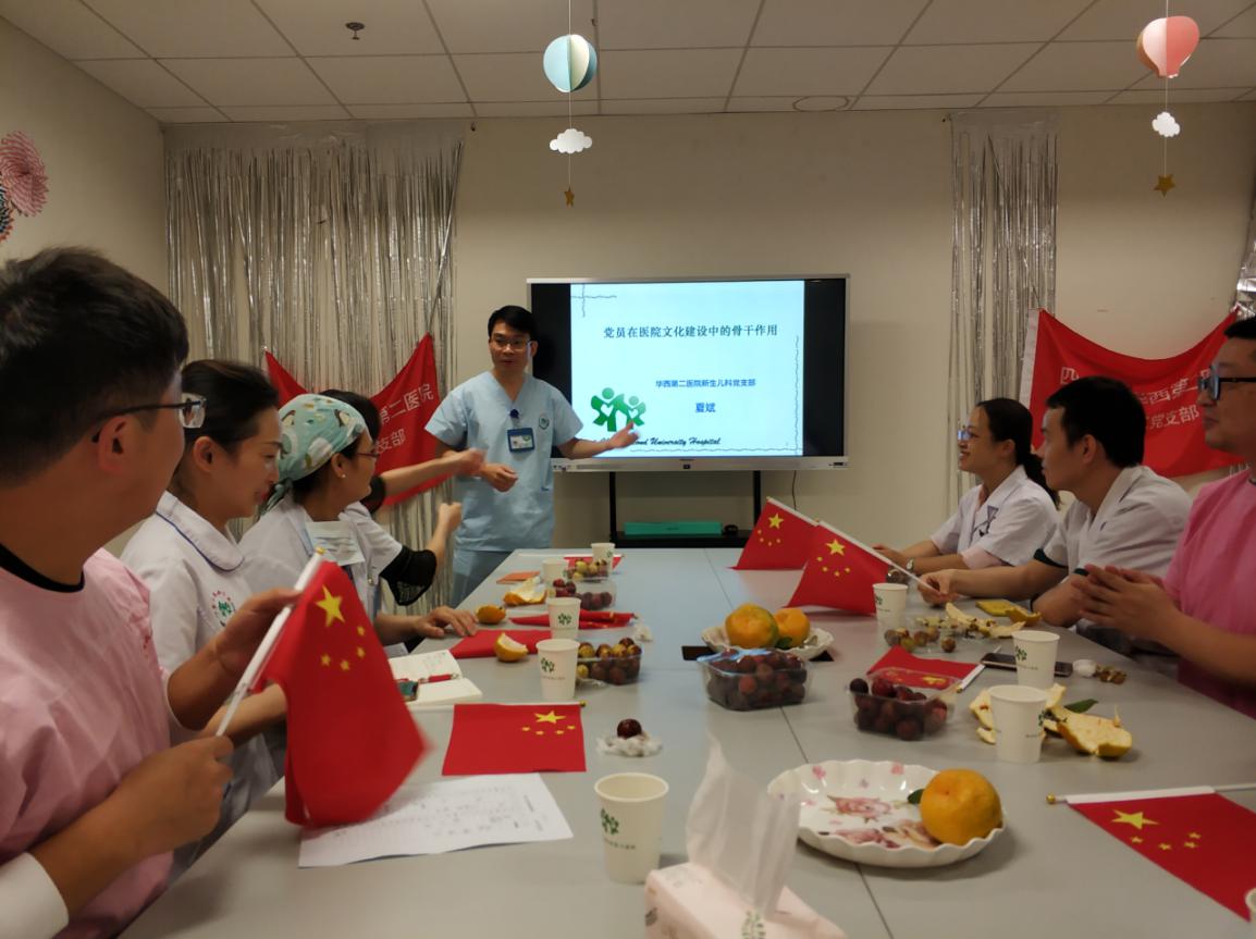 9月29日,四川大学华西第二医院产科二、三党支部和新生儿科党支部以支部共建的形式继续开展“不忘初心、牢记使命”主题活动及“庆祝新中国成立70周年”活动。此次活动在锦江院区11楼新生儿科举行,由产科二支部胡雅毅书记、产科三支部周淑副书记、新生儿科支部夏斌书记共同组织,旨在加强科室之间的沟通协作、保障医疗安全、促进医患和谐。