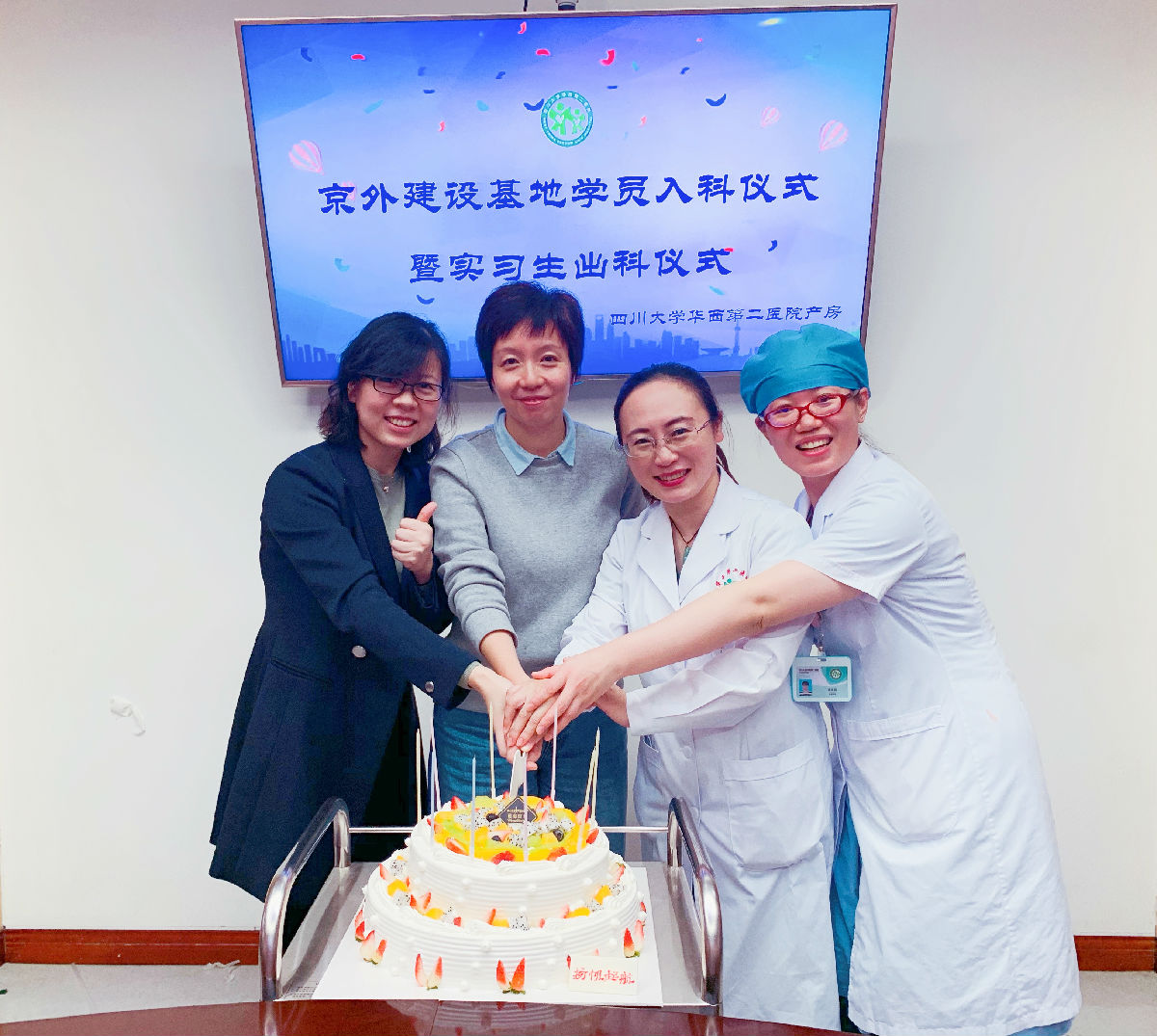2020年10月20日,四川大学华西第二医院迎来了京外基地建设培训的老师们,这对华西二院的产房来说意义重大。华西二院产房举办入科仪式,以此欢迎培训的老师们。