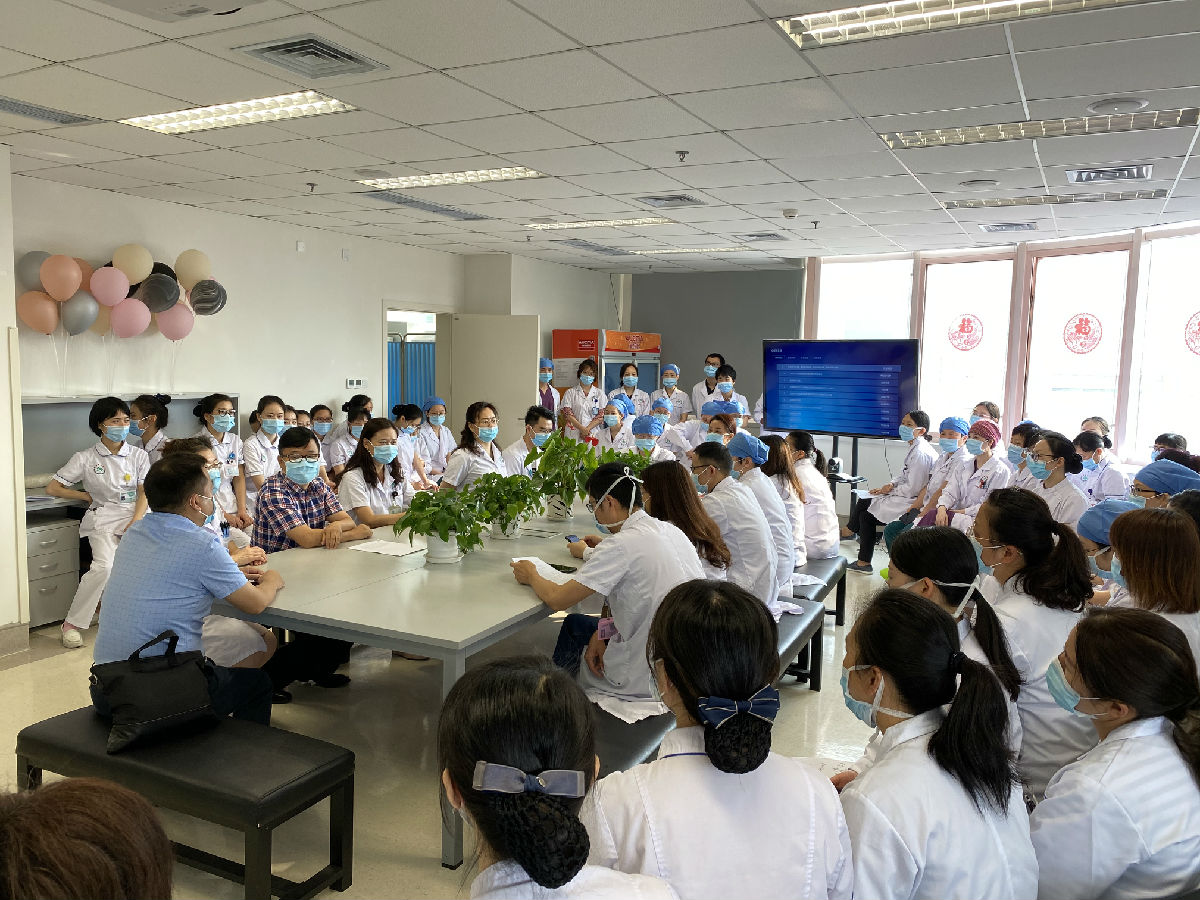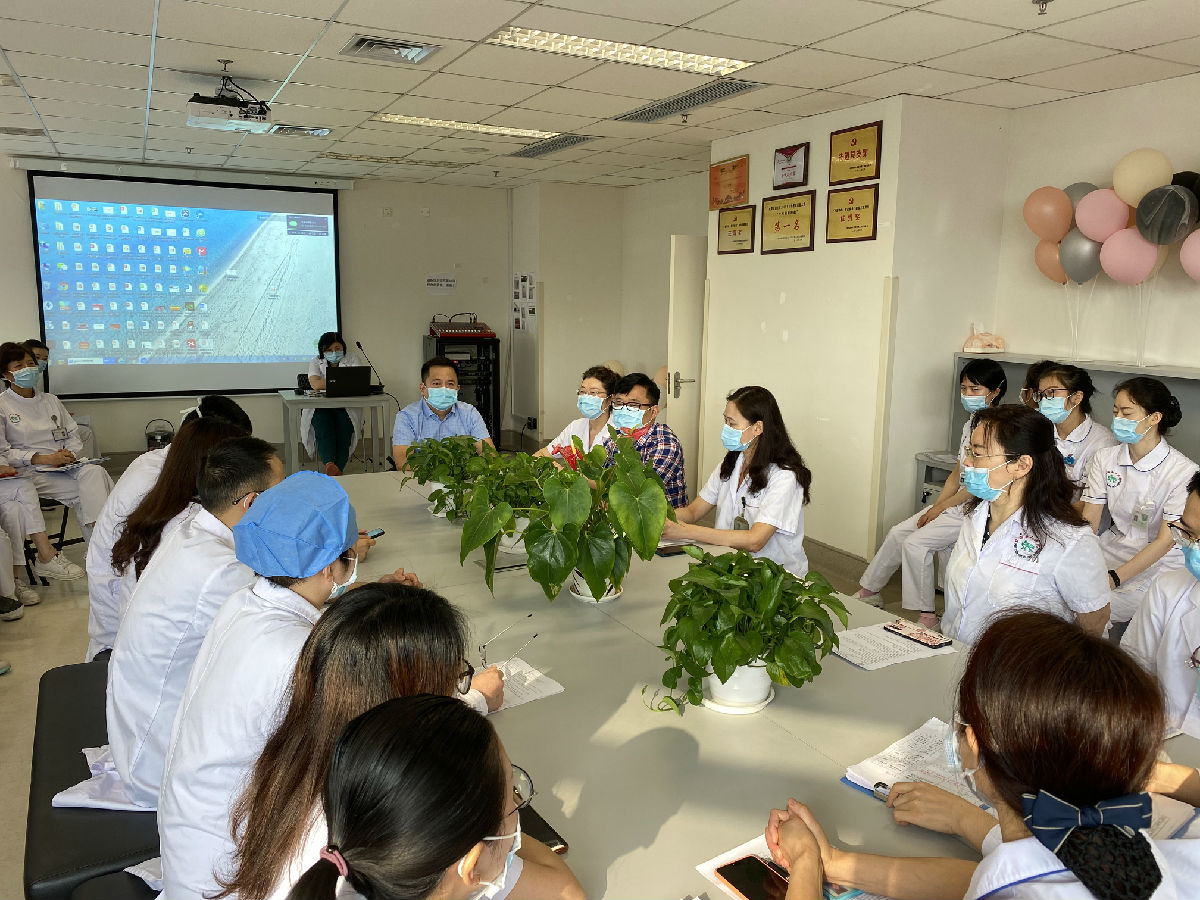 2020年5月15日一早,刘瀚旻院长来到锦江院区产科病房参加晨交班会议,通过这种形式开展调研指导工作。会议由产科刘兴会主任主持,锦江院区产科全体医护人员参加会议,院长助理、院办主任王学东陪同调研。