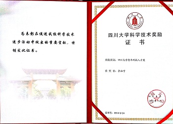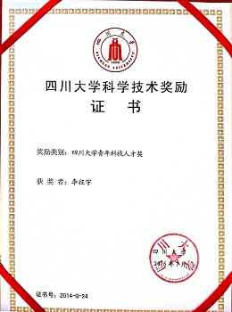 四川大学为了奖励在基础研究、应用基础研究和产学研合作等方面取得显著成绩及能成为高层次人才后备人选的青年学者特设立“四川大学青年科技人才奖”,全校每年授予人数不超过十名,妇产科博士生导师李征宇副教授在完成繁重的临床医疗、教学等工作的同时,在科学研究方面取得了突出成绩,喜获2015年“四川大学青年科技人才奖”。