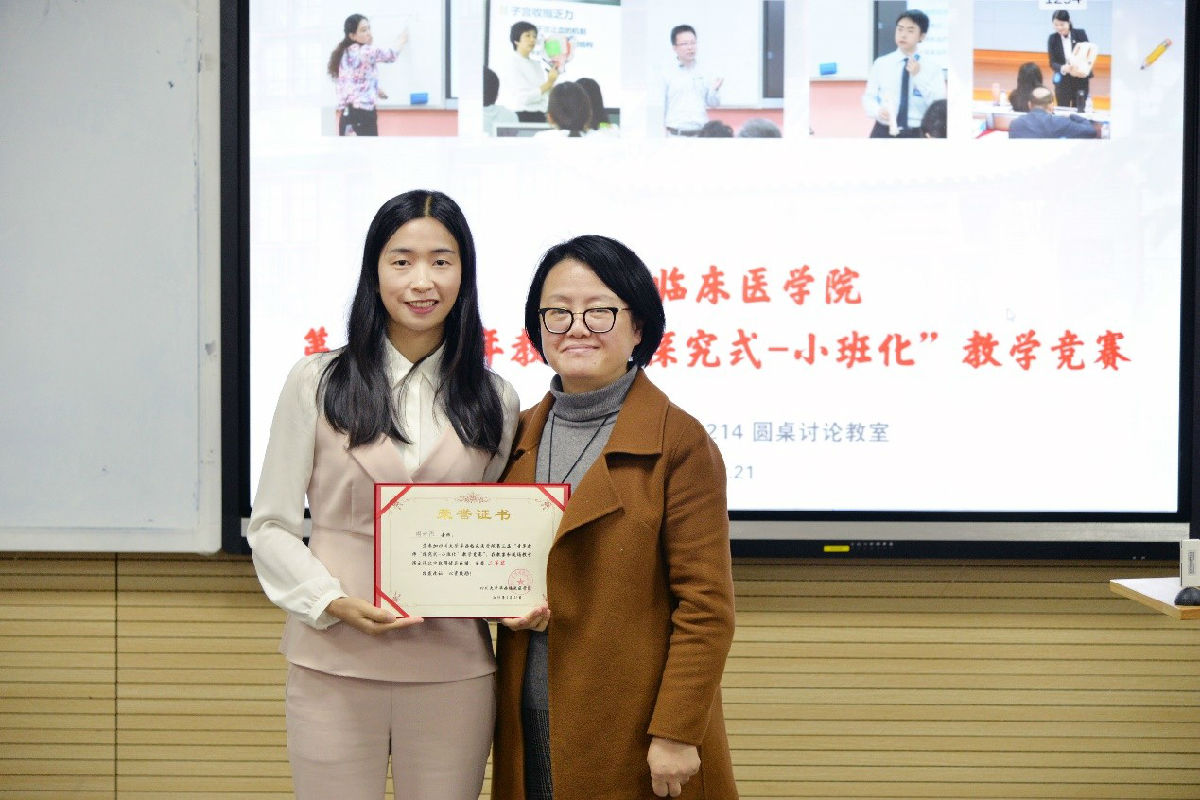 为进一步落实“以学为中心”的教育理念,深化“探究式-小班化”课堂教学改革,由四川大学华西临床医学院教务部牵头举办 “华西临床医学院第三届“青年教师‘探究式-小班化’教学竞赛”,于2019年2月21日下午在临医楼214圆桌讨论教室圆满结束,我院妇产科周坤燕老师经15分钟的课堂教学、互动和模型同屏展示三个环节的展示,组现场评分后,从各个教研室推荐参赛的15位青年教师中脱颖而出,喜获二等奖。
