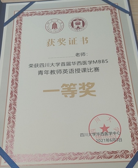 热烈祝贺郭俊良医师获四川大学首届华西医学MBBS青年教师英语授课比赛一等奖