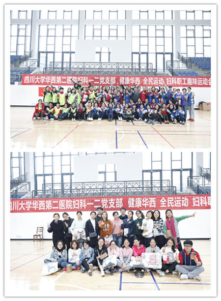 为增强科室凝聚力,培养团队协作精神,促进职工身心健康,11月25日上午,由妇科一、二党支部及妇科团支部联合举办的“健康华西,全民运动”妇科职工趣味运动会在华西校区体育馆内隆重进行。妇科主任王平教授、妇科一党支部李清丽书记、妇科二党支部何跃东书记、妇科团支部周琪敏书记带领科室员工职工积极参加了本次活动,彭芝兰教授也到场为大家加油助威。