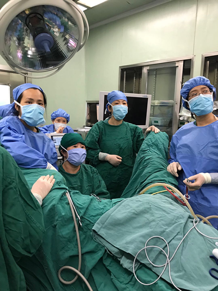 患者方女士,42岁,从事艺术工作,双卵巢囊肿,经评估可行微创手术治疗。但无论选择传统的多孔腹腔镜还是经脐单孔腹腔镜都可能会在腹部留下瘢痕,这让方女士难以接受。经过仔细研究,郑莹教授团队决定通过经阴道NOTES 手术来实现方女士“无痕”手术的愿望。在郑莹教授及綦小蓉副教授医疗团队、吴楠及周文琴麻醉师团队、黄晓丹及张少菊手术护师团队的通力协作下,成功实施经阴道Notes手术。术后该女士未诉伤口疼痛且恢复迅速,对“无痕”手术的治疗效果特别满意。