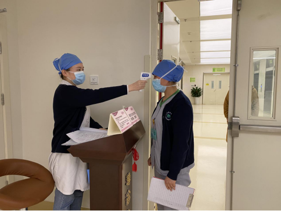 “您好,请您测下体温。”“最近有去过武汉吗?接触过外来人员么?”“有无发热及呼吸道症状呢?”病房大门前设置了临时体温监测点,对每名进入病房的人员进行测温并登记,身份证证明查看,同时询问流行病史做好记录。测温的患者确定无异常后,才能进入病房。陈年红做好必要的防护措施,穿着工作服,在体温监测点,一守就是一天。