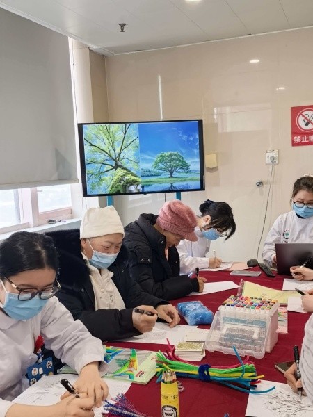 活动中,由余佳忆主管护师组成的护理团队首先带领患者进行舒缓冥想,帮助大家放松身心、锚定当下。随后,在“打造我的生命之树”环节,患者们以绘画、文字结合的方式,在卡片上描绘属于自己的生命图景,将过往经历、当下感受与未来期许融入枝叶脉络。小组分享时,大家围坐交流“生命之林”的独特感悟,在倾听与共鸣中看见彼此的生命力量;面对“风暴来临”的反思议题,患者们共同探讨疾病与困境的应对方式,在互助中重建心理韧性。