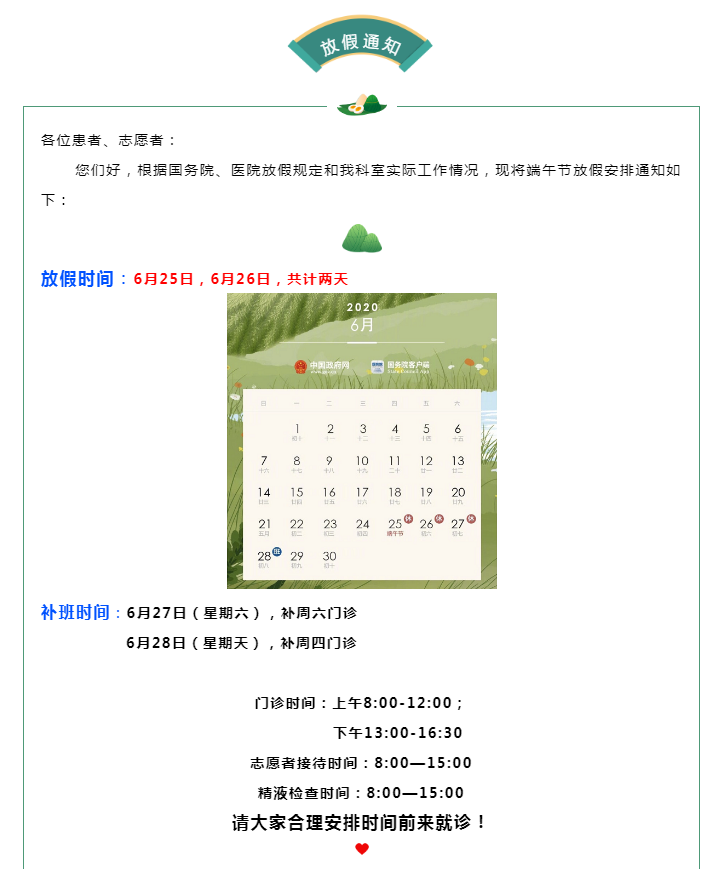 【2020年端午节放假通知】——生殖男科/四川省人类精子库