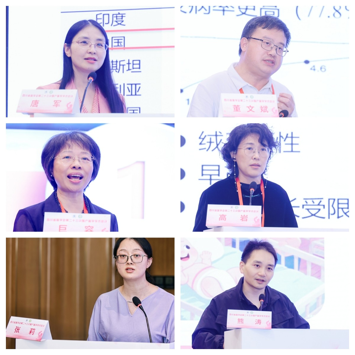会议以“交叉融合、创新发展”为主题,聚焦国内外围产医学领域的最新临床进展与研究热点,推动多学科深度融合与交流。中华医学会围产医学分会主任委员朴梅花教授、候任主任委员漆洪波教授及前任主任委员刘兴会教授、海南省医学会围产医学专业委员会主任委员陈小菊教授,我院母得志、王晓东、肖雪、唐军、石晶、张莉、熊涛、何昀、胡艳玲教授,四川省人民医院梅劼教授、西南医科大学董文斌、傅晓冬教授、四川省妇幼保健院高岩、张勇教授、川北医学院附属医院石琪教授、成都市妇女儿童中心医院巨容教授围绕围产医学各领域的热点问题进行了专题报告。