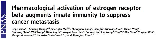 我院妇产科周圣涛团队于2018年3月29日在国际知名期刊美国科学院院刊(PNAS)发表论文题为“Pharmacological activation of estrogen receptor beta augments innate immunity to suppress cancer me-x-tastasis”的科研论文,揭示ERβ激动剂在抑制肿瘤转移中的关键作用及分子机制。