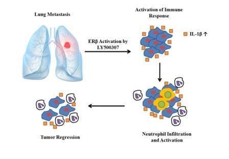 该论文报道了 ERβ激动剂LY500307在triple-negative breast cancer (TNBC) 和melanoma两种肿瘤肺转移模型中,通过促进中性粒细胞的浸润和活化,从而抑制肿瘤的肺转移。该研究结论对研发新型肿瘤靶向治疗药物、提高肿瘤患者的生存率和改善肿瘤患者的生存质量具有重大战略意义。