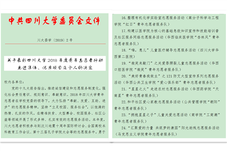 我院“嗨 患儿”志愿项目获四川大学青年志愿者行动表彰