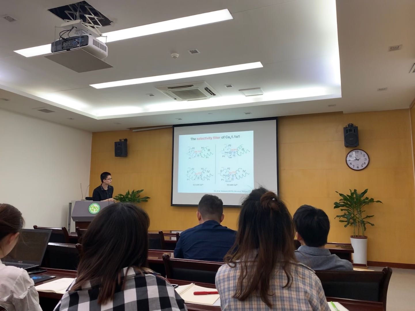 吴建平博士在清华大学生命科学学院获得博士学位,在普林斯顿大学跟随著名结构生物学颜宁教授进行重大疾病相关的通道蛋白冷冻电镜结构与功能研究,在相关领域取得了突出的成绩。吴建平博士深入浅出地介绍了电压门控钙通道的结构生物学研究,并和参会师生展开了热烈的讨论和交流。