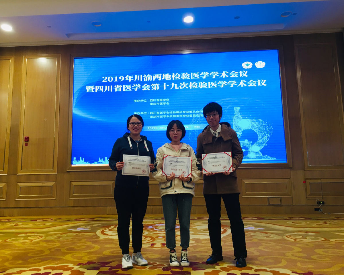 在本次大会上,检验科向大会投稿数篇。科室欧国进老师获得“优秀壁报奖”,颜子乙老师获得“优秀论文奖”。值得一提的是,车光璐老师还在知识竞赛环节荣获“四川省首届迈克杯检验医学知识竞赛三等奖”。